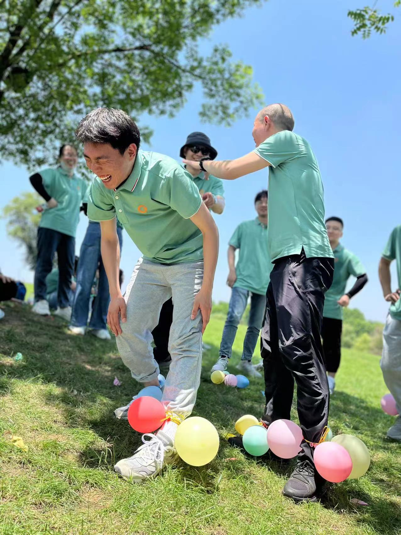 游戲限時8分鐘,大家紛紛積極參與,四處跑跳踩破其他小組的氣球,盡情釋放壓力,享受團隊合作的樂趣。結束時所有人都累得氣喘吁吁,臉上卻洋溢著燦爛的笑容。清點留下的氣球數量時,瞧瞧大家笑得多開心?。?/p>