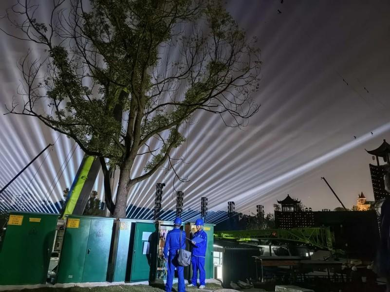 作為慶祝中華民族一年一度傳統中秋佳節的綜藝晚會,中央廣播電視總臺2025年中秋晚會將在四川省德陽市舉辦。晚會主舞臺搭建在依山傍水的玄珠湖公園內,與地標建筑“德陽之星”電視塔、鐘鼓樓毗鄰相望。為呈現出美輪美奐的演出效果,主舞臺除設置亭臺樓榭等精致布景外,還遍布各類復雜龐大的舞美燈光、音響特效系統,加之匯集國內眾多明星藝人參演,對電力供應保障提出了極高要求。